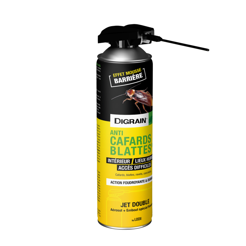 DIGRAIN® ANTI CAFARDS / BLATTES NG est un aérosol insecticide particulièrement efficace contre les insectes rampants, notamment contre les blattes, cafards, ravets et cancrelats en lieux humides