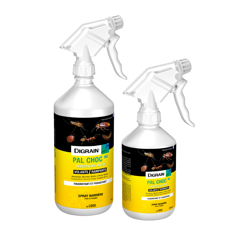 DIGRAIN PAL CHOC NG s’utilise en pulvérisateur ou au pinceau à raison de 500ml pour 10m2. Bien agiter le flacon avant l’emploi. Traiter les endroits fréquentés par les insectes notamment les plinthes, les dessous des éviers, l’arrière des réfrigérateurs, des cuisinières et des machines à laver ainsi que les bouches d’aération.