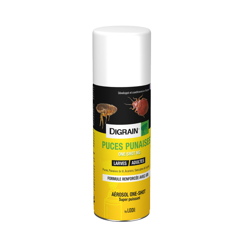 Aérosol à usage unique destiné à lutter contre les punaises de lit et les puces. Permet de traiter 36m2 de surface, soit environ 90m3, agit en quelques heures sur les puces et empêche les larves d’arriver à maturité et donc de se reproduire.